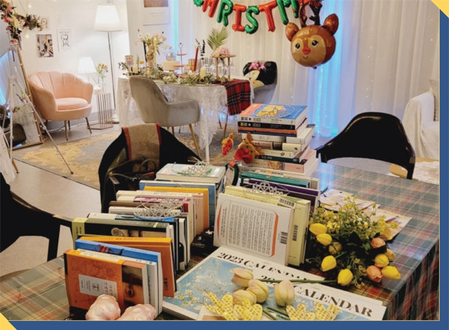 만나자마자 좀 전에 카카오톡으로 나누던 이야기가 이어졌다. 어느 소설가의 신간에 대한 이야기였다. 소설을 특별히 좋아하는 우리는 가져온 소설책을 이야기하며 장소를 옮겼다. 세종에 사는 회원이 특별히 준비를 많이 했다. 전국에서 세종으로 몰려와 책을 주제로 연말 파티를 한다는 것이 놀라워서 책임감을 갖고 진심을 다해 준비한 것이다. 예상치 못하게 파티룸을 빌려 환영 파티를 했다. 연말을 앞두고 있어서인지 크리스마스 콘셉트로 꾸며진 파티룸이었다. 대구에서 온 회원은 각자 쓸 수 있는 티아라를 챙겨왔다. 처음 보는 사람들과 티아라를 쓰고 크리스마스 파티라니, 하며 어색해하는 사람은 한 명도 없었다. 책을 들고 포즈를 잡으며 신나서 수차례 사진을 찍었다.
