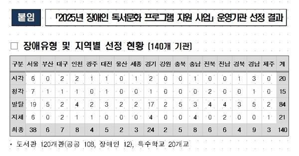 | 국립장애인도서관 ‘2025년 장애인 독서문화 프로그램 지원사업’ 선정결과 발표문건 중에서 갈무리한 것임 |