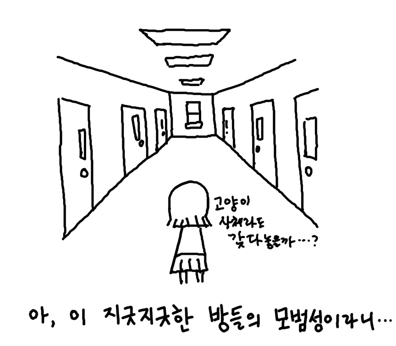 복도를 종종걸음으로 다시 돌아온다. 바삐 걸어가는 집오리처럼.